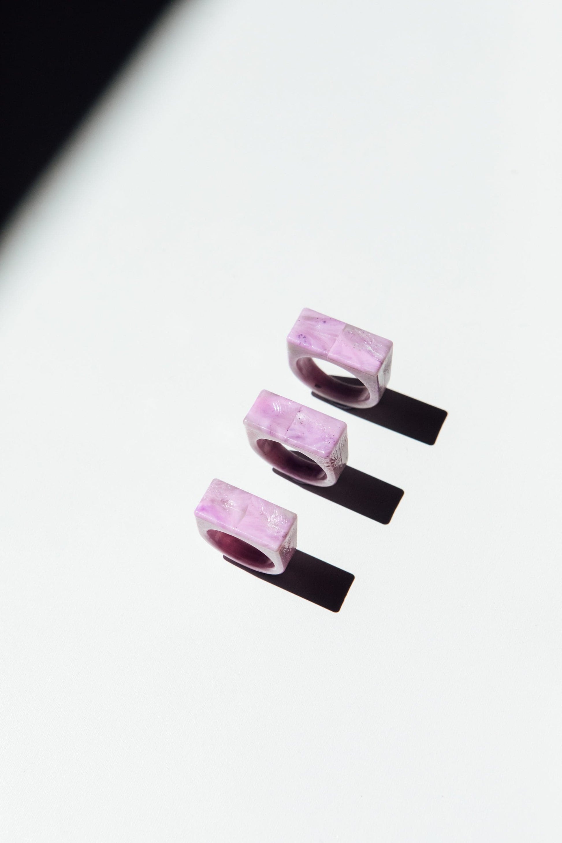 The colour way is a strong lilac creating a bold ring perfect for Summer.