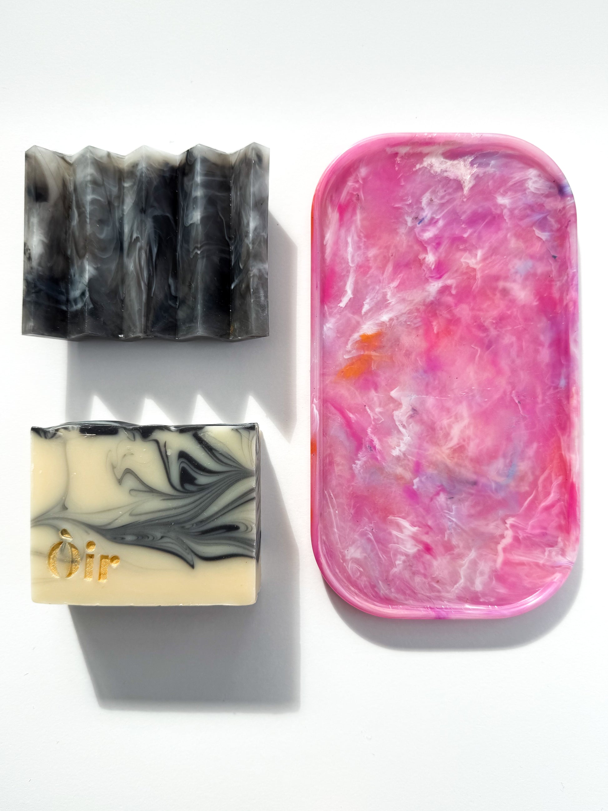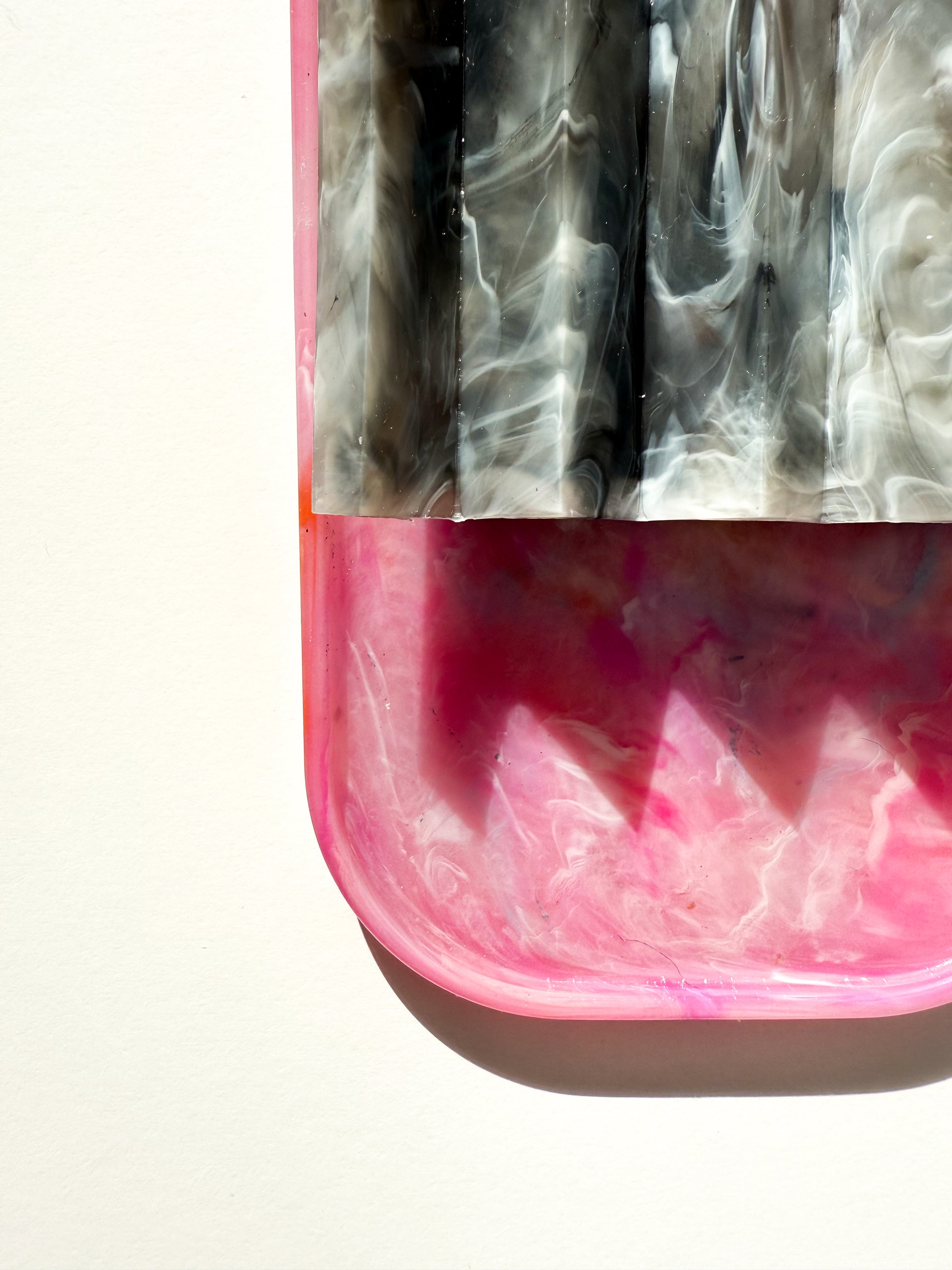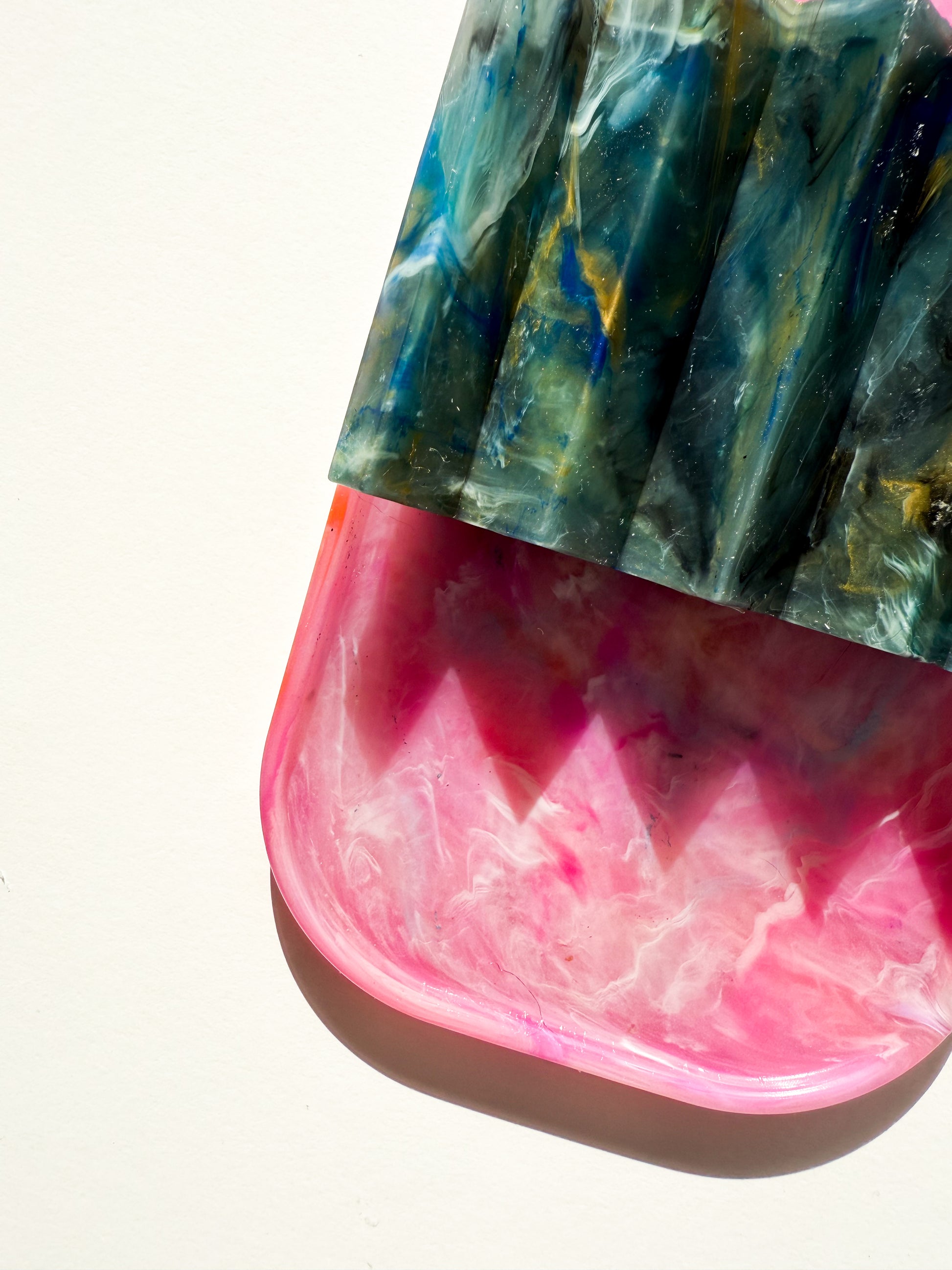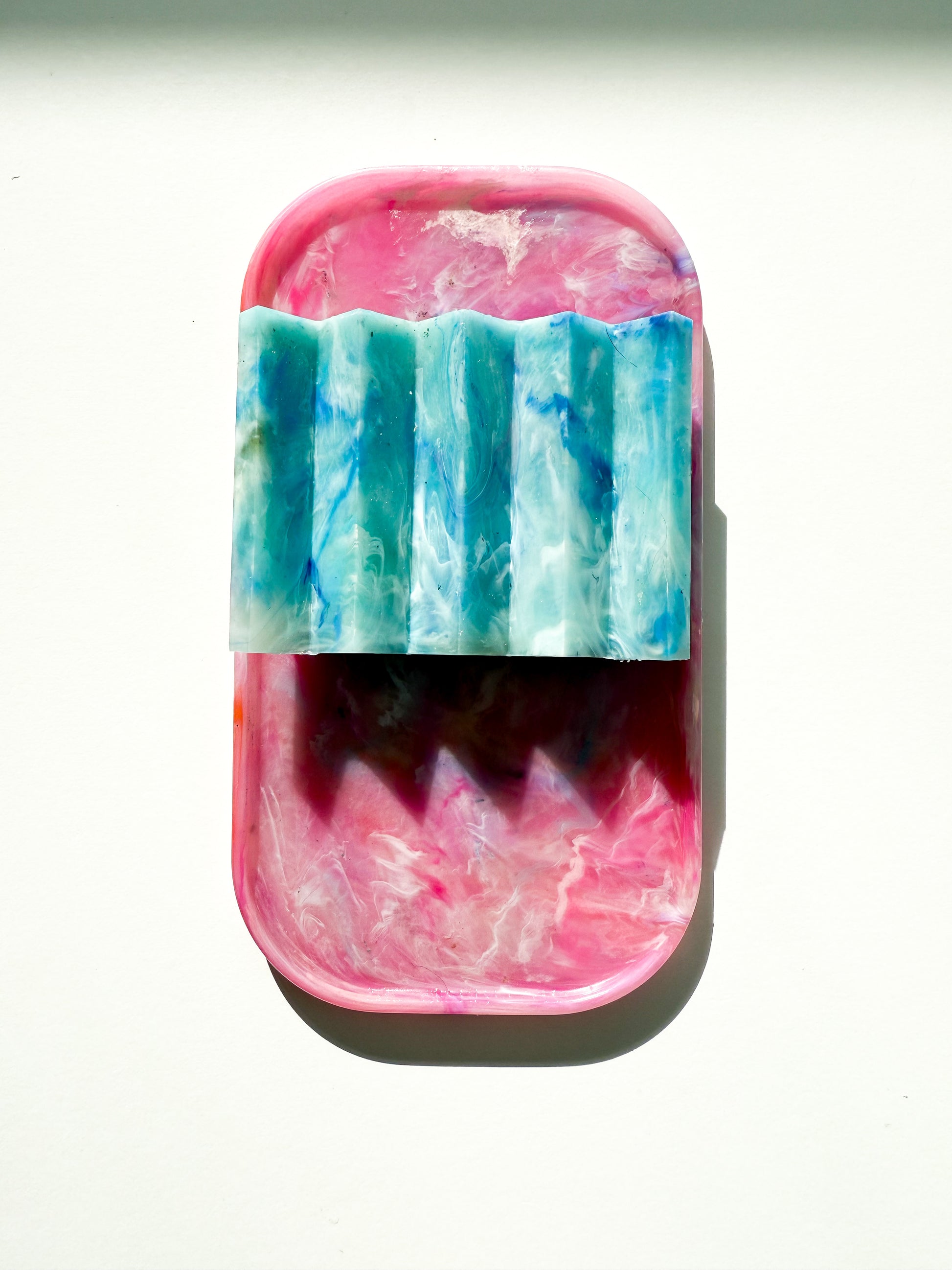 Colourway Description: The Van'ish blend features plastics from Vanish tubs, LOL doll containers, and yogurt pots, resulting in a striking mix of pink, orange, and yellow. This cheerful colour combination creates a vibrant and unique pattern in every piece, making each tray a one-of-a-kind product that showcases the beauty of recycled materials.